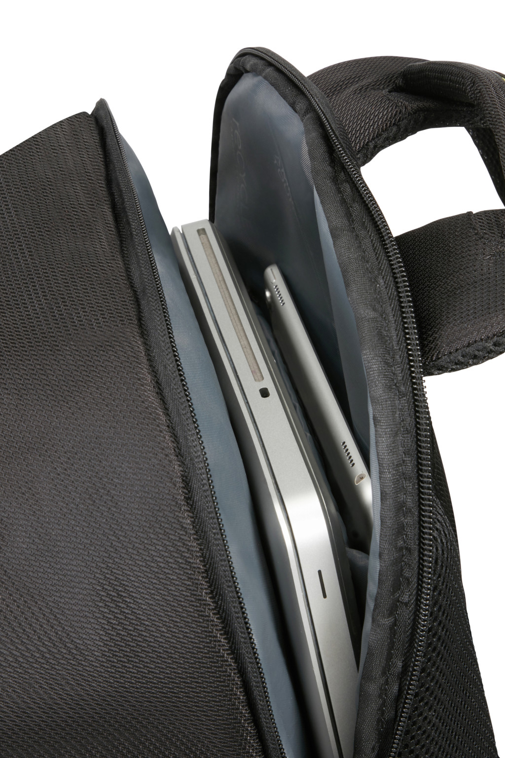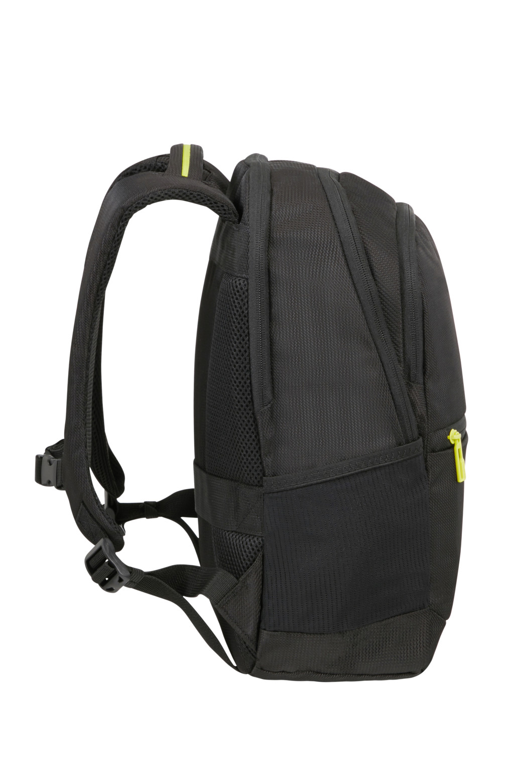 American Tourister puhafedeles laptop hátizsák, két elülső cipzáros zseb, egy oldalsó palacktartó hálós zseb, egy oldalsó kisebb méretű cipzáros zseb, egy felső fogantyú, hátsó zseb a bőröndhöz való rögzítéséhez, két állítható ergonómikus vállpánt, egy nagy légtérű főrekesz és egy laptop illetve táblagép rekesz. Anyag: 12 darab fél literes újrahasznosított palackból készült. Súly: 0.5 kg. Űrtartalom: 15.5 L.