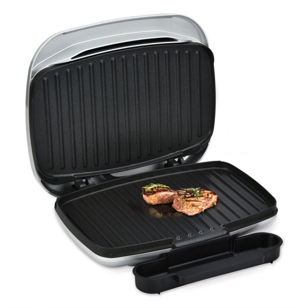 Electric grill Heinner AriaGrill, power: 1000W; die-cast fixed plates, 27 X 23 cm; non-stick coating; cool touch handle; power and ready light indicator; drip tray for oil collecting; color: silver