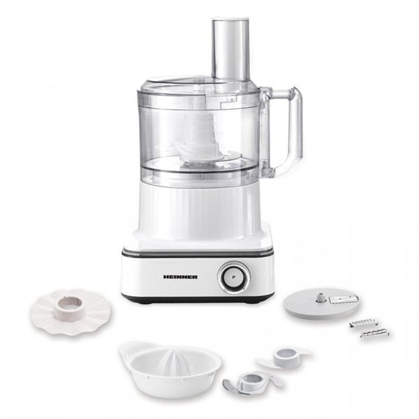 Food processor FineGourmet HFP-K1000WP, Power: 1000W, 6 speeds with light indicator, pulse function, processing bowl: 2.3L, stainless steel blades, accessories: kneading blade, 3 blades, emulsify disc, 1.5L plastic jar, citrus juicer, oil painting on housing