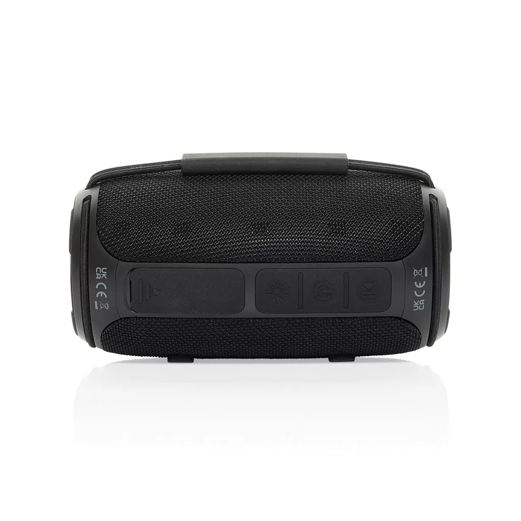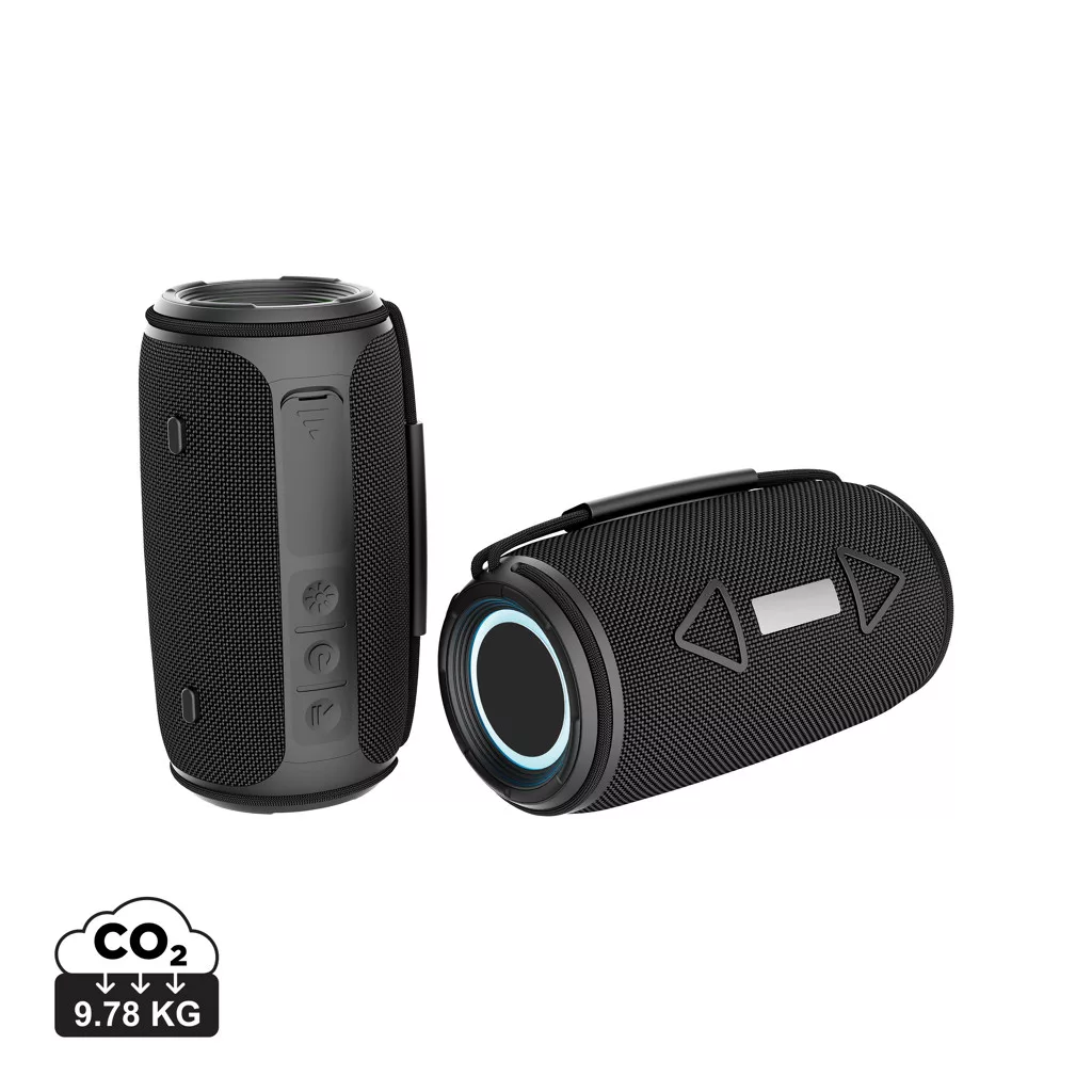 A kivételes hangélményt a tartóssággal és az alacsony ökológiai lábnyommal ötvözi. A 16 W-os erőteljes kimenet és a dupla mélynyomók révén mély basszust és éles hangzást biztosít a magával ragadó hallgatási élmény érdekében. IPX4 vízálló minősítéssel készült, hogy ellenálljon a fröccsenésnek és a könnyű esőnek, így beltéri és kültéri használatra egyaránt ideális. Az integrált fogantyú és az újratölthető 1500 mAh-s li-ion akkumulátor hordozhatóságot biztosít és akár 7 órás lejátszási időt nyújt 50%-os hangerőn, míg az 5.3 vezeték nélküli kapcsolat zökkenőmentes csatlakoztatást és automatikus párosítást garantál. Mikrofonnal és hívásfogadási funkcióval. Tökéletes a kihangosított hívásokhoz. A tok RCS újrahasznosított ABS műanyagból és RPET anyagból készült. Az RCS-tanúsítvány biztosítja az újrahasznosított anyagok ellátási láncát. Teljes újrahasznosított anyagtartalom: 37% a termék összsúlya alapján. PVC-mentes. FSC kraft dobozban.