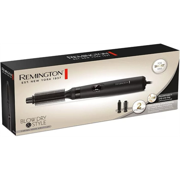 - Két cserélhető formázó tartozék: 19 mm átmérőjű kefe és 25 mm átmérőjű, puha sörtéjű kefe – kifejezetten rövid hajhoz.