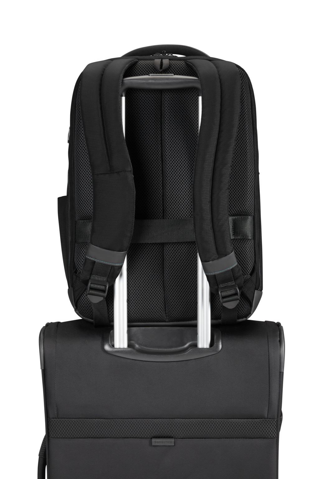 Samsonite puhafedeles laptop hátizsák, PET palack újrahasznosított anyag, két elülső cipzáros zseb, egy beépített fogantyú, két állítható ergonomikus vállpánt, belső főrekesz amely alkalmas egy 15.6" laptop és egy 10.5" táblagép tárolására, egy oldalsó cipzáros zseb palack tárolásához, hátsó zseb a bőröndhöz való rögzítéséhez, USB port. Űrtartalom: 19.0 L. Súly: 0.9 kg.