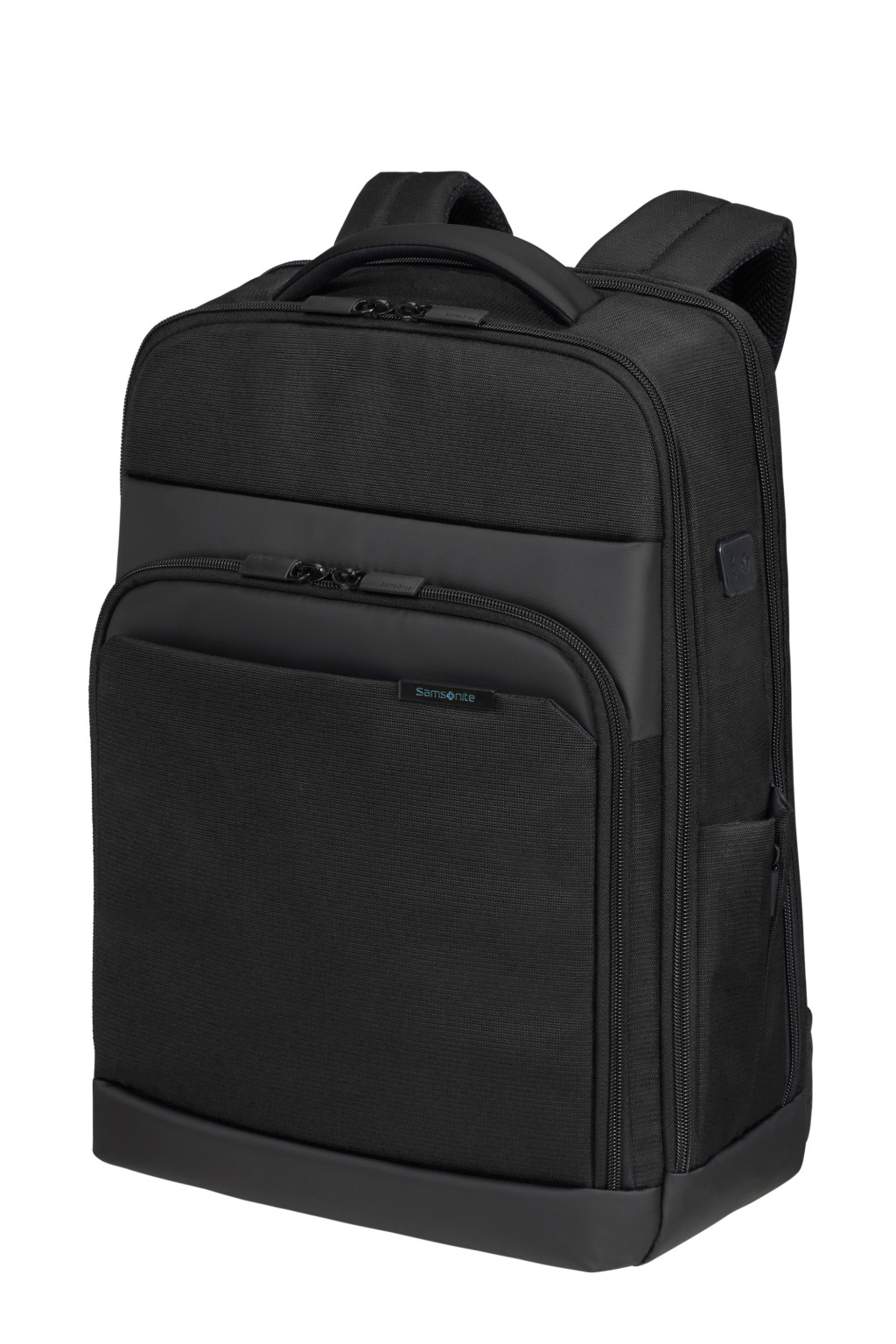 Samsonite puhafedeles laptop hátizsák, PET palack újrahasznosított anyag, két elülső cipzáros zseb, egy beépített fogantyú, két állítható ergonomikus vállpánt, belső főrekesz amely alkalmas egy 17.3" laptop és egy 10.5" táblagép tárolására, egy oldalsó cipzáros zseb palack tárolásához, hátsó zseb a bőröndhöz való rögzítéséhez, USB port. Űrtartalom: 25.5 L. Súly: 1.1 kg.