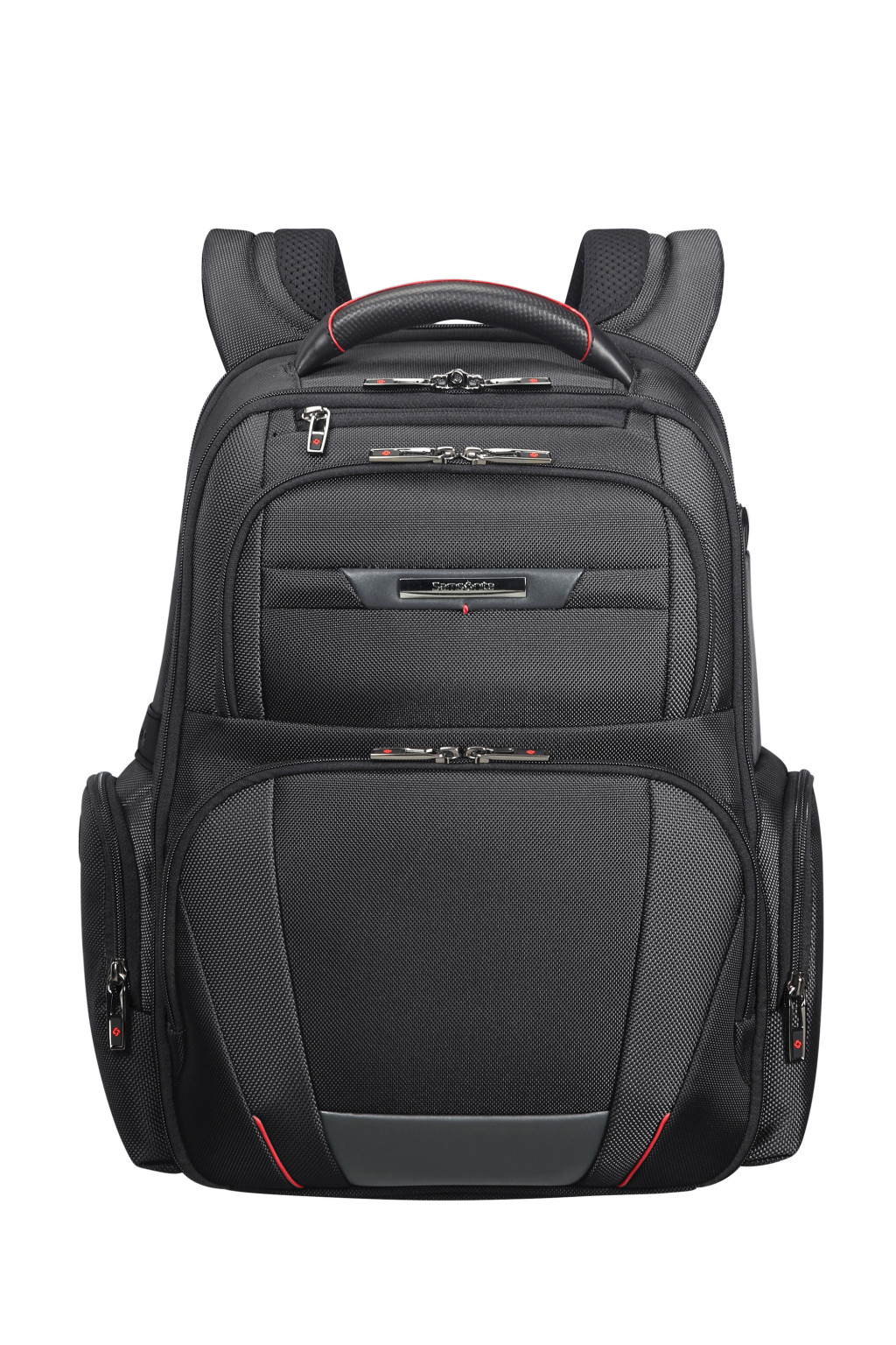 Samsonite könnyű súlyú, laptop hátizsák, nappa bőr díszítéssel, két oldalsó cipzáros zseb, két elűlső cipzáros zseb, egy beépített fogantyú, egy hátsó zseb a bőröndhöz való rögzítésére, két ergonómikus állítható vállpánt, egy belső párnázott laptop rekesz memoria habbal elátva, egy párnázott tablet rekesz. Súly: 1.4 kg. Űrtartalom: 20 L.
