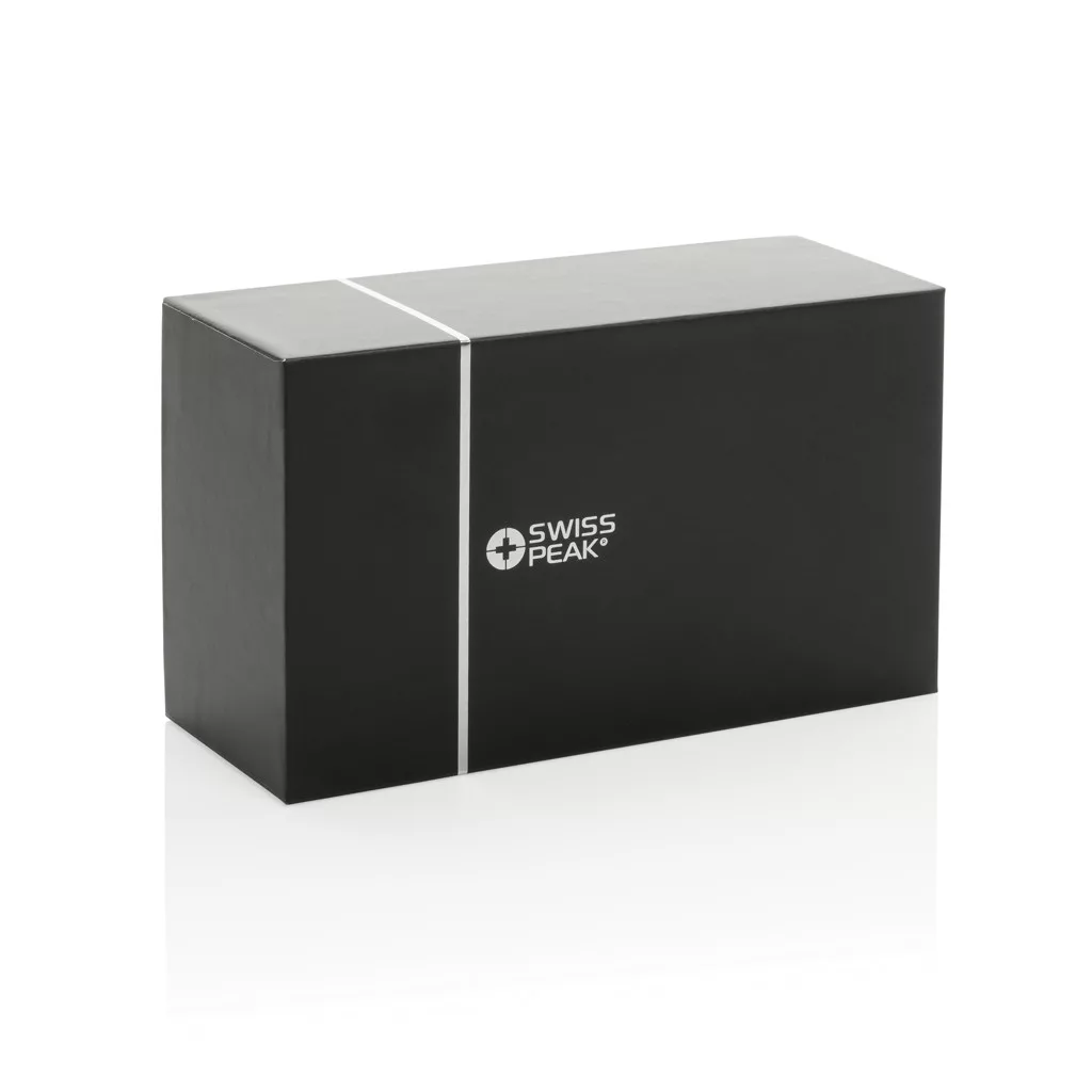 A Swiss Peak RCS újrahasznosított alumínium 10 W-os hangszóró erőteljes, kiváló minőségű hangzást nyújt mély, rezonáló basszussal az integrált mélynyomónak és a kettős 10 W-os hangszórónak köszönhetően. Kivételes hangélményt kínál. 5.3 vezeték nélküli kapcsolattal a zökkenőmentes csattlakoztatás és automatikus párosítás érdekében. 1200 mAh-s polimer Li-ion akkumulátorral akár 5 órás lejátszási időt biztosít 50%-os hangerőn. Mindössze 2,5 óra alatt teljesen feltöltődik a mellékelt USB-C - USB-C kábellel. USB-C és AUX porttal. RCS újrahasznosított alumíniumból készült. Az RCS-tanúsítvány biztosítja az újrahasznosított anyagok ellátási láncát. Teljes újrahasznosított anyagtartalom: 40% a termék összsúlya alapján. PVC-mentes. FSC ajándékdobozban. RPET-ből készült hordozószíjjal.